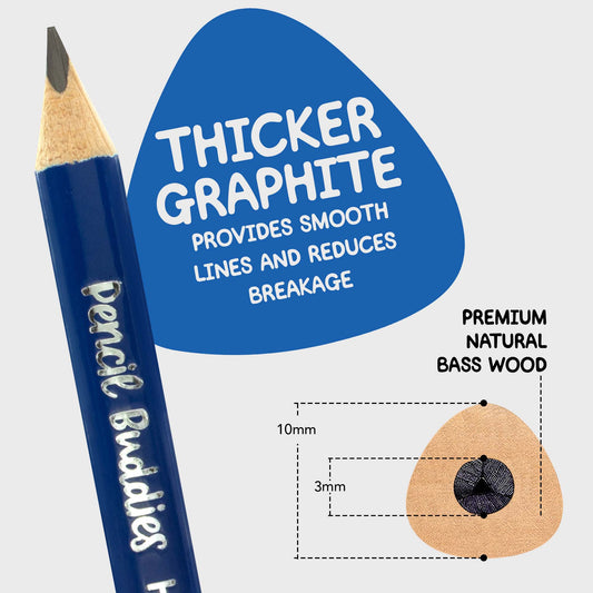 Short & Fat 3.5” Triangular Pencils – 3MM Core + Sharpener + Eraser(Set of 12) Blue