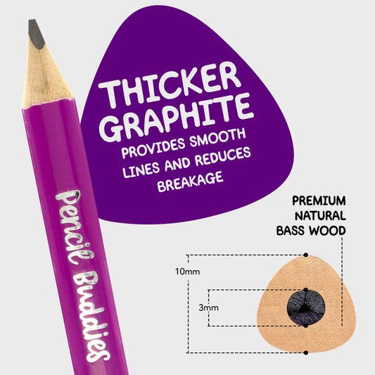 Short & Fat 3.5” Triangular Pencils – 3MM Core + Sharpener + Eraser (Set of 12) Purple