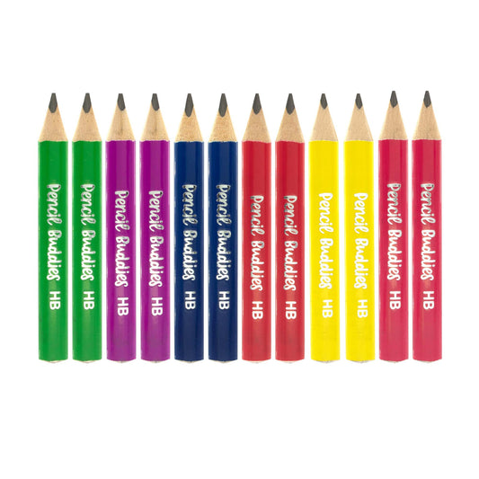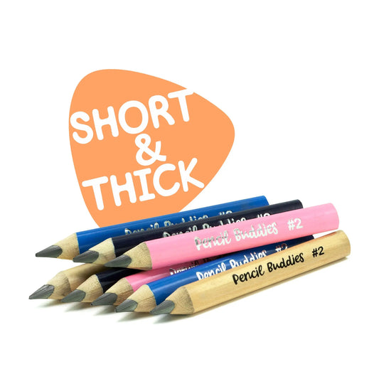 Short & Fat 3.5” Triangular Pencils – 3MM Core (Set of 12 w/ Buddy Sharpener) Multi-Color