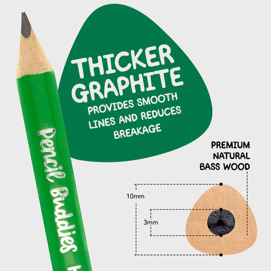 Short & Fat 3.5” Triangular Pencils – Thick 3MM Core + Sharpener + Eraser (Set of 12) Green